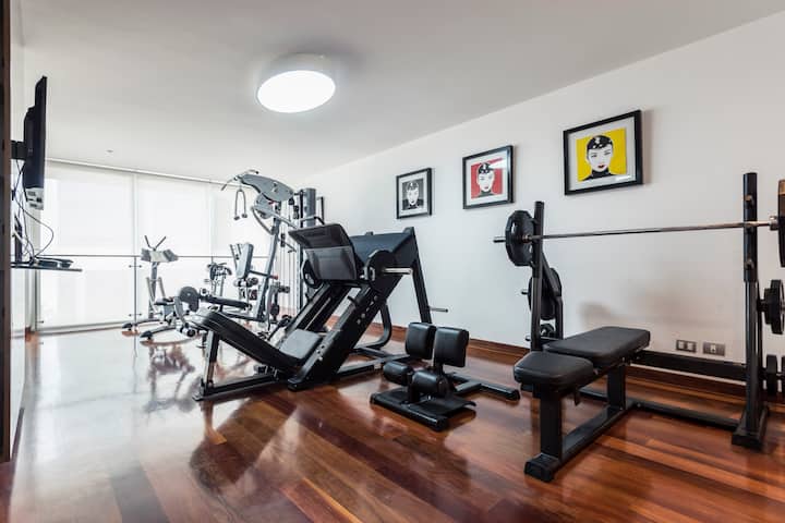瑜伽垫和自由重量器械方便房客健身。