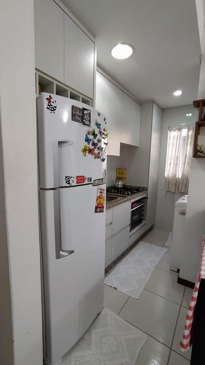 我的公寓地理位置优越,可轻松前往Joinville市中心,从BR 101出口出发,南北方向,也可前往Rodovia do Arroz,前往Guaramirim和Jaraguá do Sul
