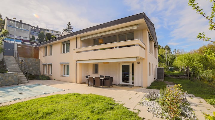 公寓靠近伯尔尼,有花园、游泳池、停车场。