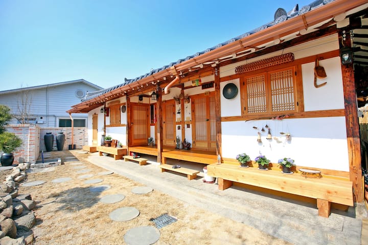4人房,全州韩屋体验Mokkjeji(带窗户的传统韩屋家庭房)