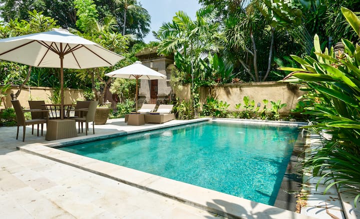 附近有各种各样的餐厅和夜生活,许多当地餐厅都提供送餐服务。 巴厘岛美食、日本美食、中国美食、印度美食、海鲜美食和意大利美食当地全都提供,或者我们可以派厨师在您舒适的别墅中烹饪。 当地超市也仅几步之遥。