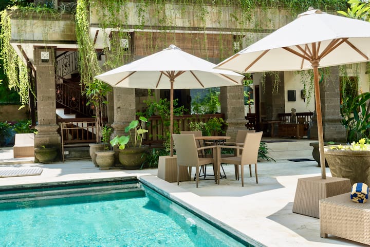 这座私人、传统风格的度假别墅位于巴厘岛(Bali)东南角的一个休闲海滨郊区沙努尔(Sanur)市中心,位置优越。