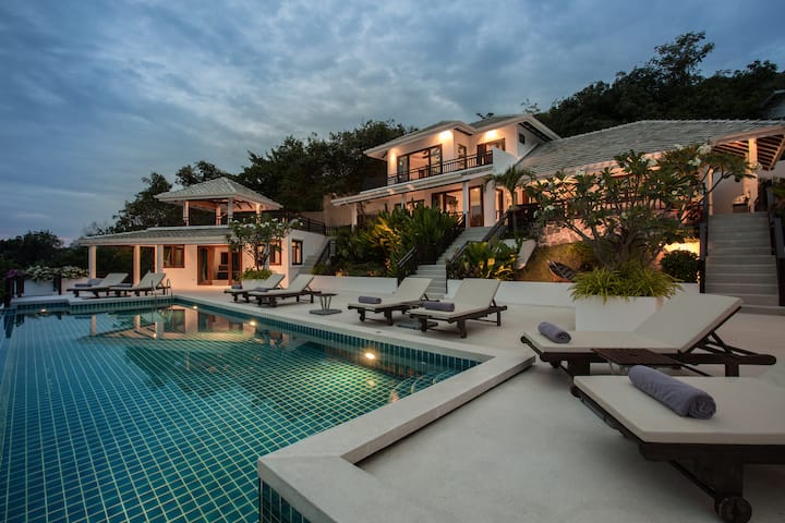 这栋海滨6卧室帕岸岛( Koh Phangan )别墅的日常压力消失,可容纳8名成人和4名儿童。 别墅只能俯瞰僻静的海滩,可通往充满热带鱼类的珊瑚花园。 可以说,您会觉得外面的世界落后了一百万英里。