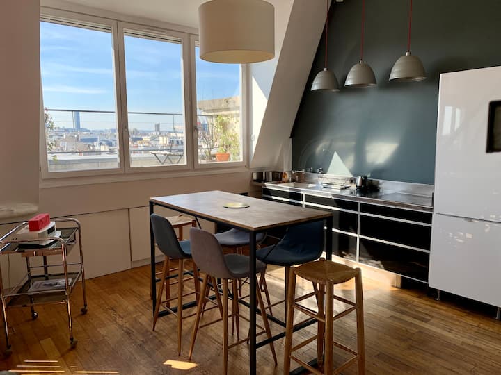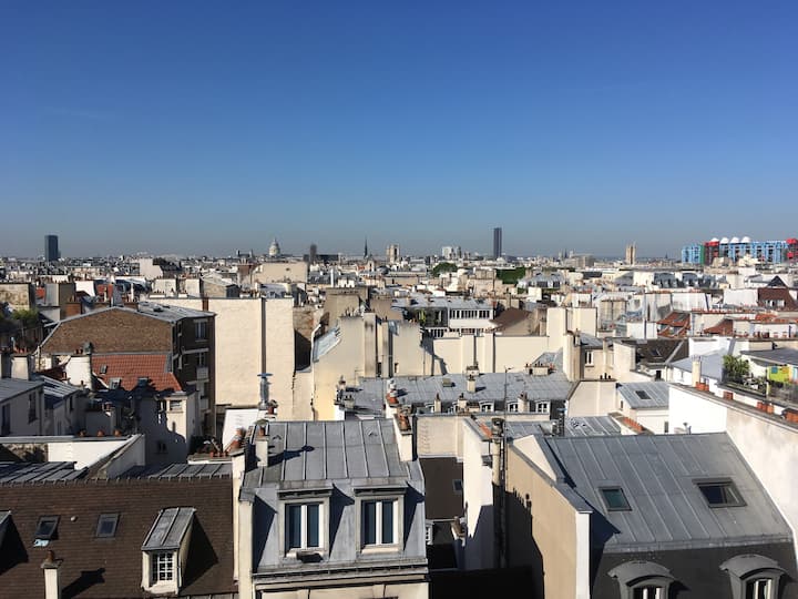 玛莱区之旅:现代阁楼,可欣赏巴黎迷人景色