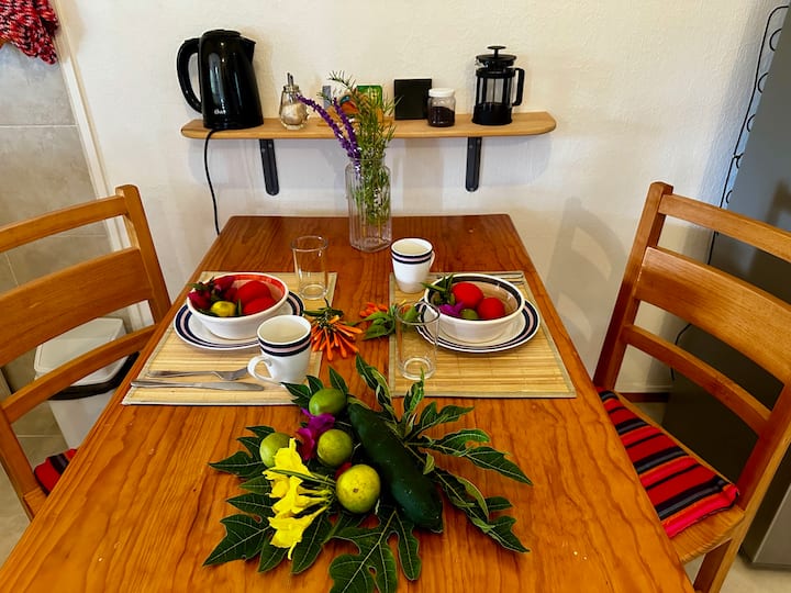 瓦哈卡是一个国际化的地方,不同的人聚在一起,我很乐意与我们友好的狗和猫一起住在这里。 我是素食主义者,我喜欢世界厨房的烹饪和素食菜肴。