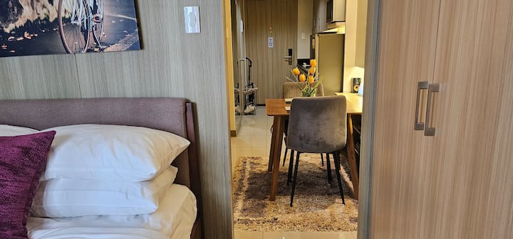 我们的房源家具齐全,室内设计精美,配备了所有基本必需品(炊具和餐具、电器、有线电视频道和带Netflix的互联网),旨在为您提供舒适的住宿体验。 最多可容纳3人的家庭/团体。配备1张双人床和1张2人沙发。我们为第3位房客提供单人泡沫床垫。我们使用酒店品质的床上用品、枕头、床单和毛巾。我们的房源位于12楼Shore Residences 1 Tower B。