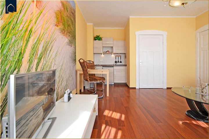 Die Ferienwohnung Düne im Seebad Ahlbeck bietet auf 39 m² ein Schlafzimmer, einen offenen Wohn- und Essbereich mit moderner, offener Küche sowie ein Bad mit Dusche und Wanne. Die Parterre-Wohnung verfügt über eine Terrasse, einen abgeschlossenen Garten und einen Privatparkplatz. WLAN, TV und vielfältige Freizeitmöglichkeiten in der Umgebung sorgen für einen angenehmen Aufenthalt.