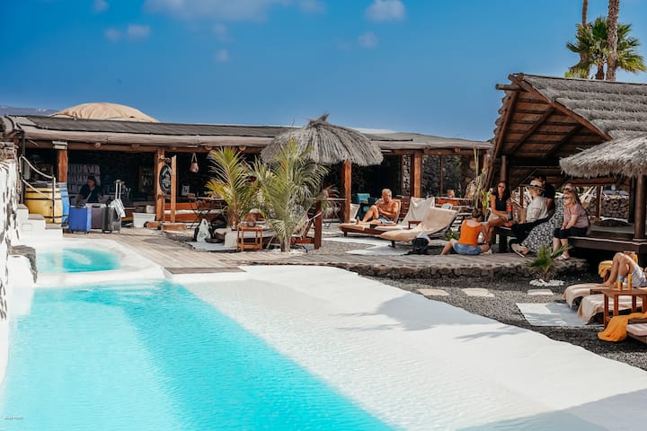 房客可以享受太阳能加热游泳池( 13米x 2.5米) ,配有遮阳波利尼西亚风格的日光浴床,以及公共休闲区,是户外用餐的理想场所。 您可以使用Finca的免费WiFi ,也可以使用房源内提供的蓝牙扬声器放松身心。 海滩爱好者会喜欢免费的海滩毛巾,非常适合在附近的海滩或海滩泳池畅游。