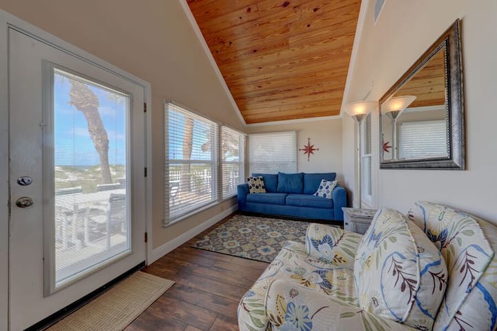游艇就像您自己的海滩家园! 房源是一座一栋独立式乡村小屋,坐落在热带郁郁葱葱的景观之间。 它位于海滨,开放、通风,航海装饰,从厨房和起居空间可欣赏美丽的海景和日落景观。 小屋建于50年代,虽然经过翻修,但它仍然拥有美丽的木质天花板和内置橱柜,保留了佛罗里达州的绝佳魅力!