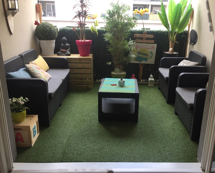 舒适公寓(4人)停车场,空调,露台,自行车