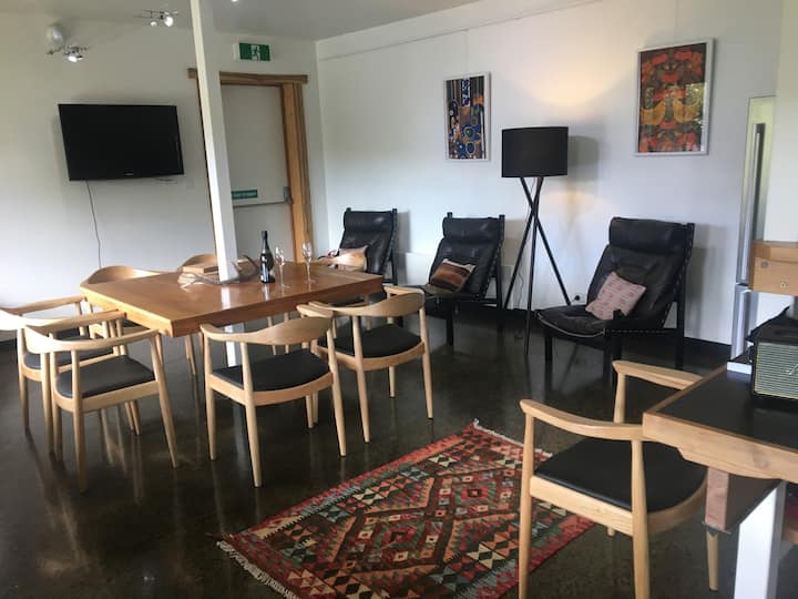 Trails End是我们在Maydena的特别房源,它独特的泥土但现代的特色和温暖的火焰让您拥有舒适放松的入住体验。木质外墙和混凝土地板给人以世纪中叶小屋风格的住宅感觉。它坐落在一个美丽的景观花园中,大多数房间都可欣赏壮丽的景色,厨房座位区域宽敞,可俯瞰山脉和花园区域,适合大型团体在步道上度过一天后舒适地聚会和放松身心。