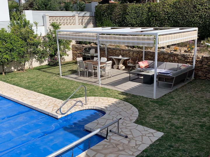 Elviria Villa拥有恒温泳池,步行1分钟即可抵达海滩