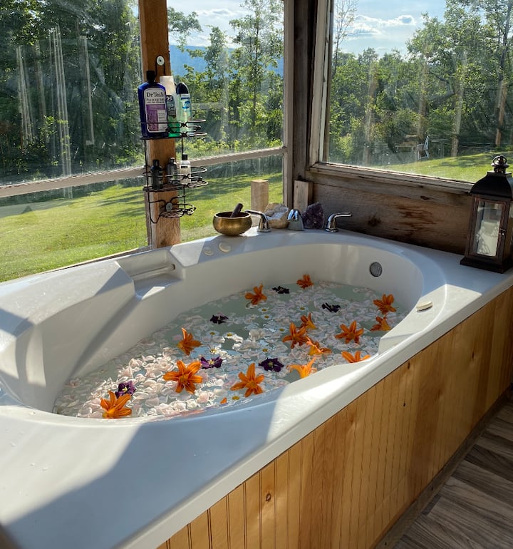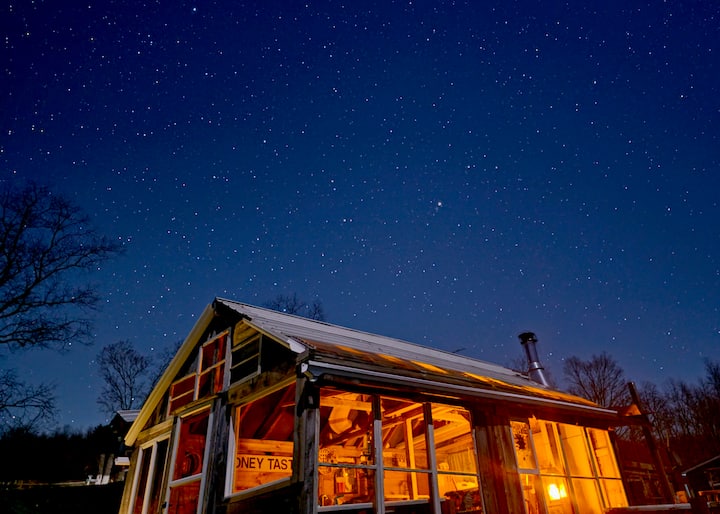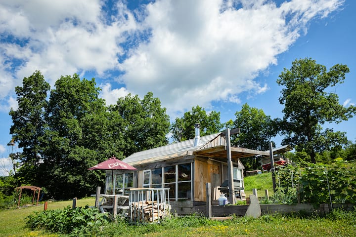 在1700英尺高的山顶享受豪华露营,配备加大双人床、铸铁木炉和卡茨基尔山的全景,距离纽约市仅2.5小时车程,位于我们美妙的Sun Barn!