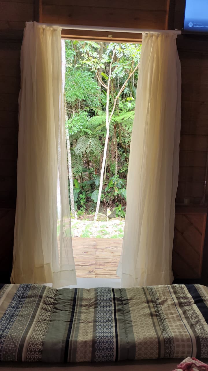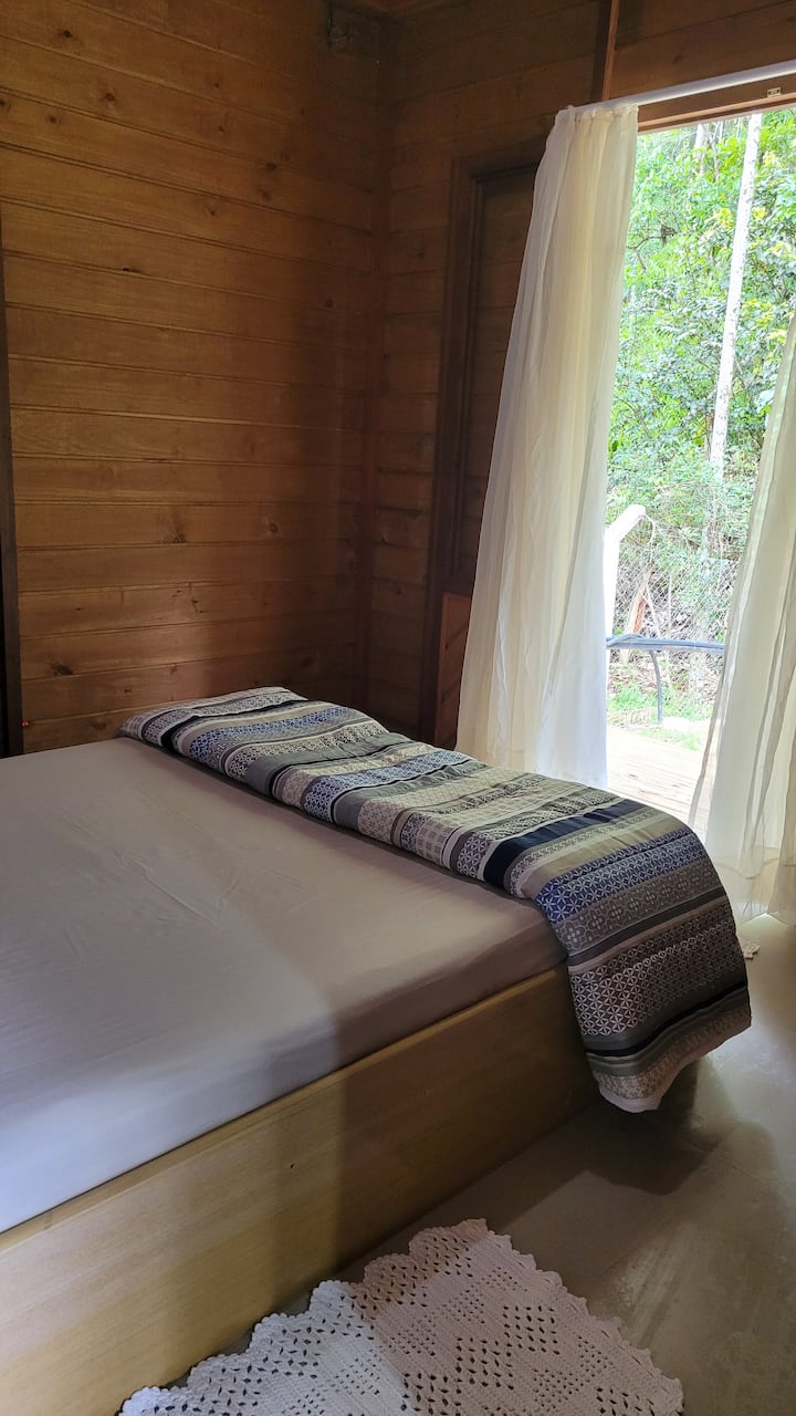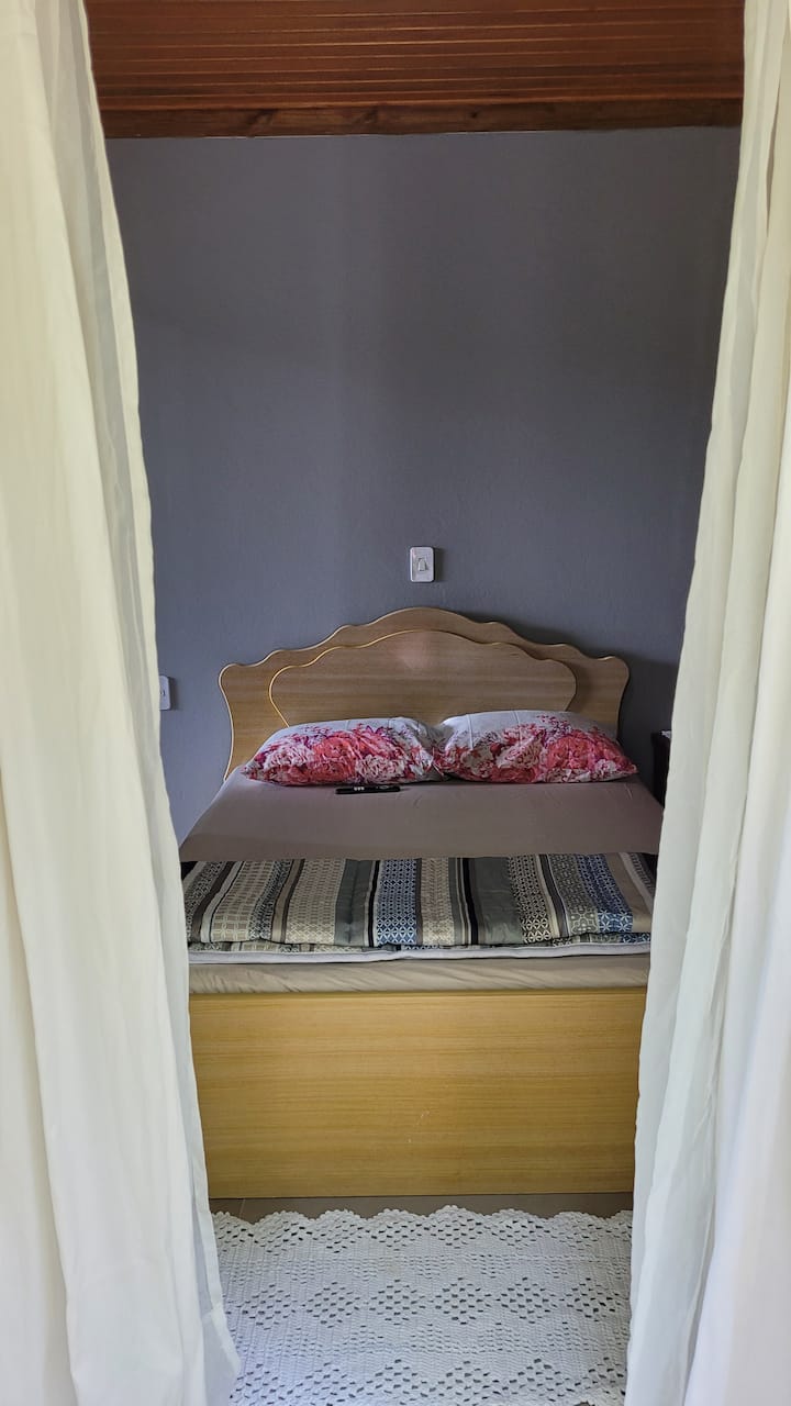 1 张约 1.35 米宽双人床、1张地板床垫
