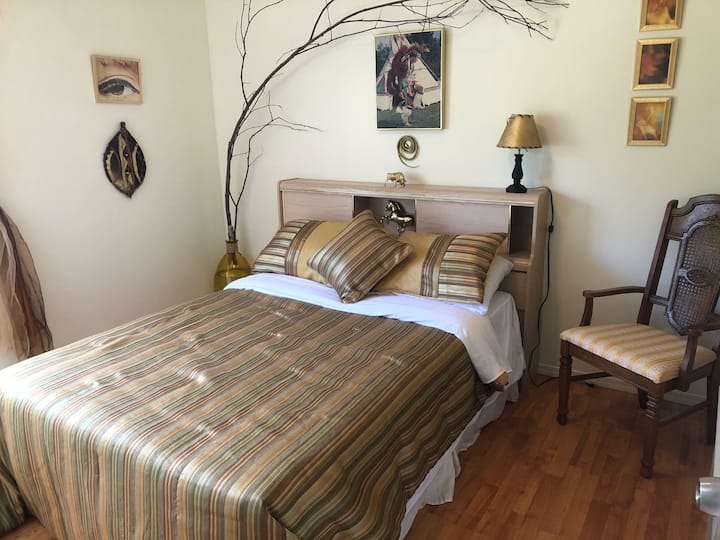 我是苏格兰人,是一只文化秃鹰,在加拿大生活了16年。 我和母亲一起住在公寓正上方。 请注意,家具有点复古。 我不提供自助入住的钥匙盒,因为我更喜欢与之前遇到的安全问题的房客见面。