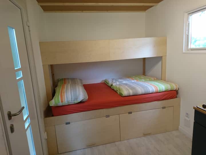 1 张约 1.35 米宽双人床、1张双层床