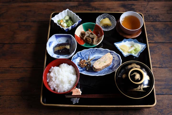 在Tsukiya ,我们在您的房间里为您提供日式早餐,包括来自京都的食材,如米饭、豆腐和蔬菜。