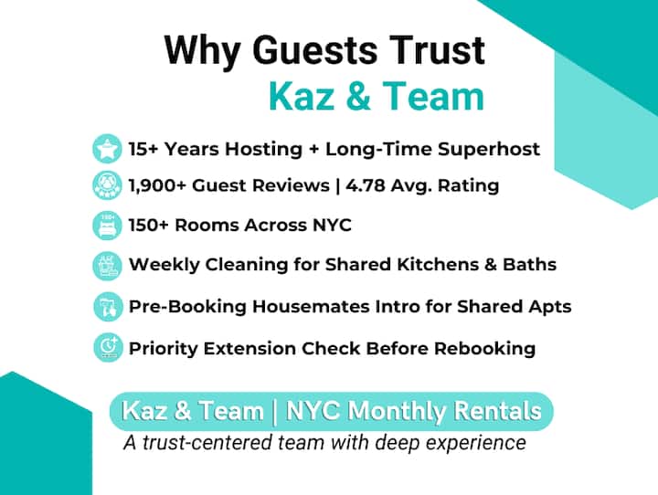 感谢您查看我的个人资料。 我与团队成员一起管理曼哈顿、皇后区和布鲁克林带家具的月租和共同生活空间。 我已经管理配备家具的公寓十年了,到目前为止已经接待了来自90个国家的5600多位房客。 如有任何问题或要求,请随时与我联系!