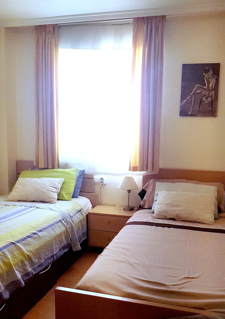 - 2 张约 0.8 - 1.1 米宽单人床