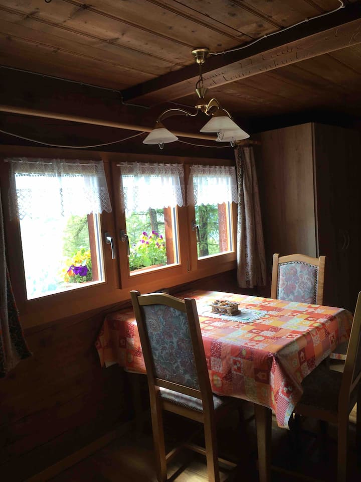位于森林边缘的美丽马延小屋,开车5分钟即可抵达四轮驱动车(或步行20分钟)即可抵达拉福克拉兹( La Forclaz ) ,一览无余地景观。