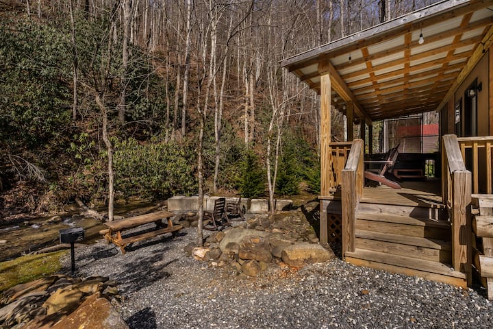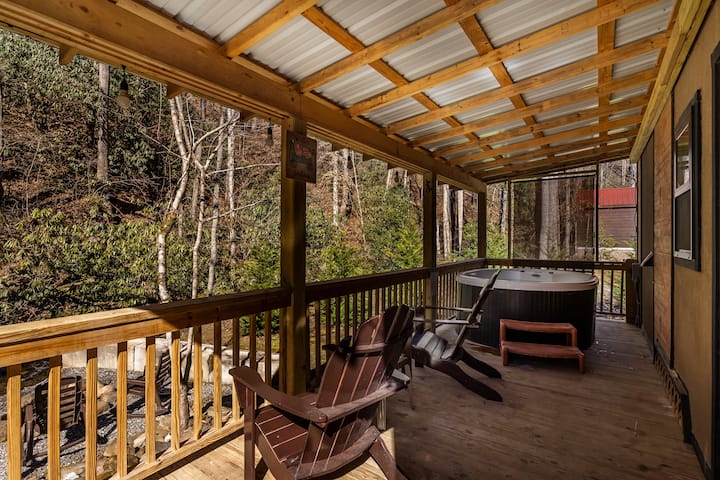 布莱森市现代小房子、热水浴缸、小溪!