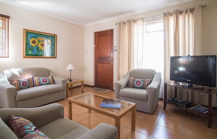 Eugene,我和丈夫出生和成长在开普敦,在我们的小屋接待房客已有二十多年了。 我们喜欢结识新朋友,大多数房客都会成为经常回来的朋友! 我退休几年了,很喜欢! 我在酒店业(开普敦的Ambassador and V&A Hotel, Waterfront)工作了近40年。 我们举办酒吧/餐厅问答活动以及公司活动。 我们对测验充满热情! 看看几年前我们参加电视游戏节目《谁想成为百万富翁》时拍摄的照片。 我们玩得很开心,做得很好-我们的15分钟名声大噪! 我们喜欢招待客人,尤其是在户外。 我们是动物爱好者-非常欢迎所有狗狗人士...我们有一只漂亮的老救援犬(Bella)和一只迷你雪纳瑞(Nezzi)!