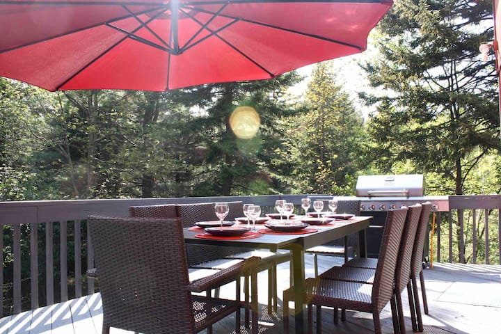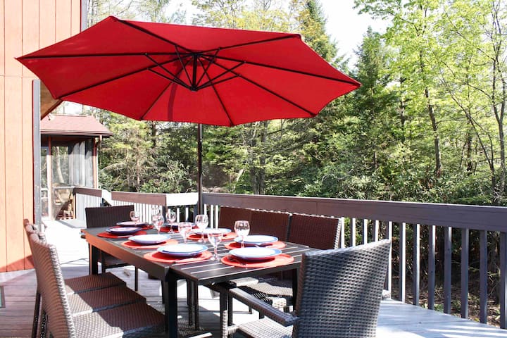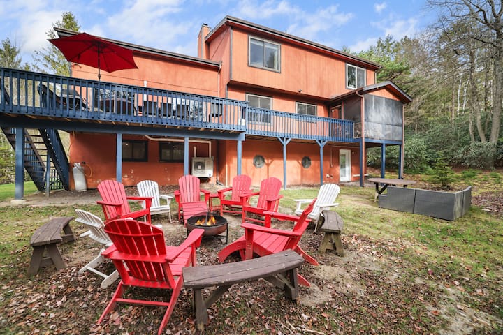 •远离喧嚣,享受私人户外露台的宁静。 呼吸新鲜空气,聆听鸟鸣声,在宽敞的户外座位上放松身心,感受皮肤上的温暖。 在火坑周围与亲朋好友一起创造难忘的回忆,烤棉花糖,在星空下分享故事。 在占地两英亩的房源中享受完全的隐私,周围环绕着郁郁葱葱的绿色植物和令人惊叹的自然美景