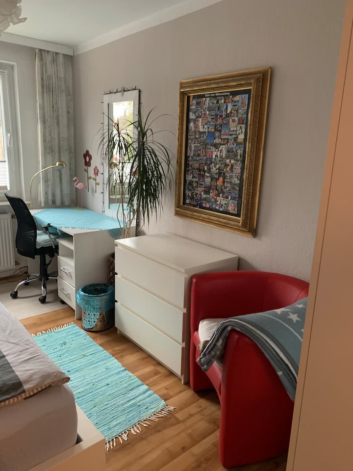 我是Inge。 我在当地报纸出版商担任媒体顾问,因为Corona在家庭办公室占95%。 如果您住在楼下的房间里……您可以使用客厅,坐在阳台上。 在公寓里,我喜欢整洁,请您小心对待我的物品。 12月22日,有一只动物福利部门的狗和我住在一起,绝对可爱,但对陌生人非常保留。 她很安静。
