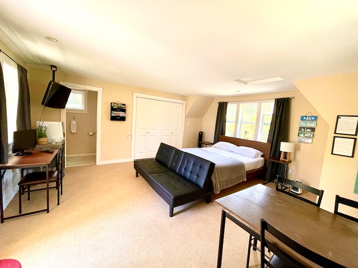 我在华盛顿州班布里奇岛的工匠风格房源和阁楼接待房客,阁楼是一处美丽的空间,位于与房源分开的建筑楼上。