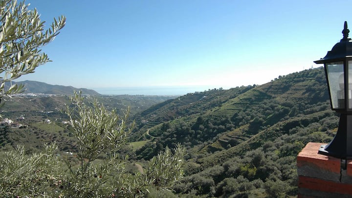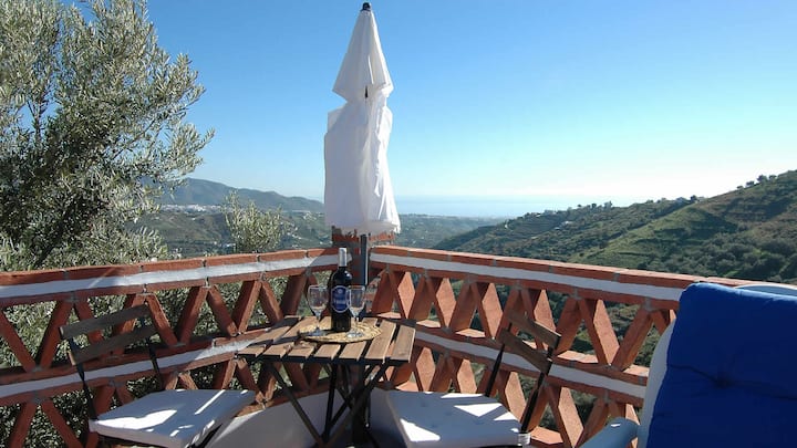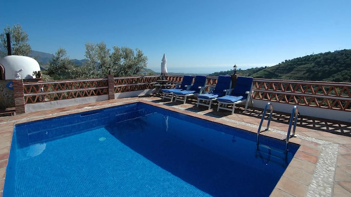 这里是放松身心的绝佳场所! < br > < br >在这座一流的小屋里,气氛轻盈透气,设有前露台和烧烤设施,供您在外面用餐。 这座安达卢西亚乡村小屋坐落在山坡上,可欣赏到周围乡村和海边的难忘景观。 这栋别墅装潢舒适,让您度过一个轻松的假期。< br > < br >位置和外部区域< br > < br >这栋小屋位于独特的高处,距离白色Frigiliana 5.3公里,拥有令人难以置信的美景。 从Frigiliana出发,一条山路向北通往Torrox村。 大约3公里后,一条蜿蜒的铺面轨道上有一些陡峭的部分通往该房源,营造出私密而独特的氛围(建议使用更强发动机的汽车)。 房子有一个可爱的阳光露台,白色鹅卵石细节周围有一个6x4米和1.50 – 1.80米深的迷人泳池。 前面设有阳台,可欣赏壮丽的海景。 提供内置烧烤和阳光躺椅。< br > < br >该地区,尤其是北部的Sierra Tejeda (山脉) ,非常适合徒步旅行者和观鸟者。 骑马也是您在附近可以练习的众多活动之一。 对于一日游,有很多可能性,如格拉纳达( Granada )、马拉加( Malaga )或龙达( Ronda )等城市。 距离内尔哈( 12公里)海滩仅15分钟车程。< br > < br > < br >内部和布局< br > < br >小屋采用质朴风格装饰,有多种蓝色和白色装饰元素。 房源的布局几乎设有舒适的开放式起居室,与用餐区和厨房融为一体。 起居区配有燃木炉、2张沙发和带DVD播放器的卫星电视。 厨房配有4人餐桌、vitro炉灶、冰箱/冰柜、微波炉、洗碗机、小型电烤箱和各种厨房用具。 洗衣机位于杂物间内。 有一间双人卧室和一间双床卧室,共用一间带洗脸盆和厕所的淋浴间。< br > < br > < br > < br >备注: < br > < br > -免费提供无线网络互联网连接。< br > -客厅和双人卧室提供空调(制冷/制热) ;每周40欧元(可在抵达时在当地支付)。