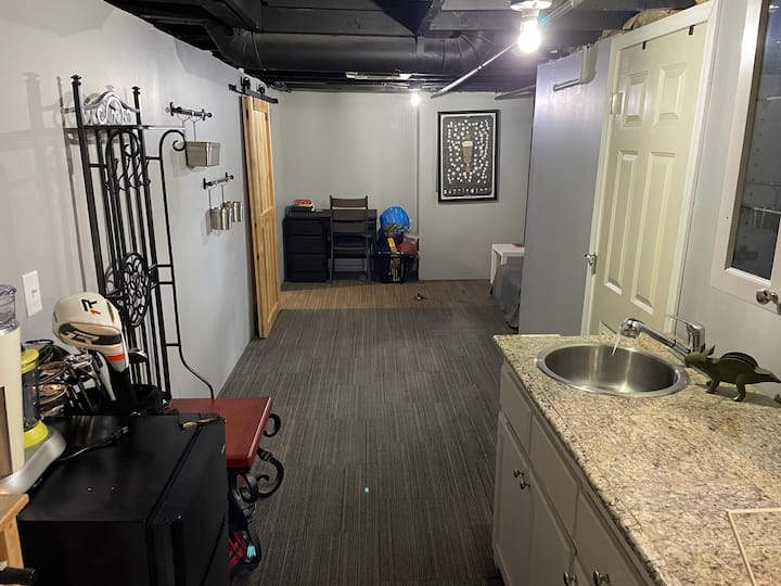 位于BIRDTOWN的舒适独立卧室和卫生间。