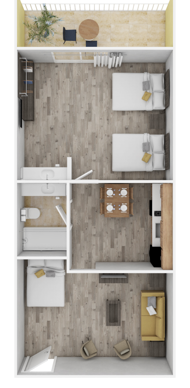 2 张约 1.35 米宽双人床