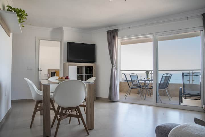 带阳台和海景的舒适公寓