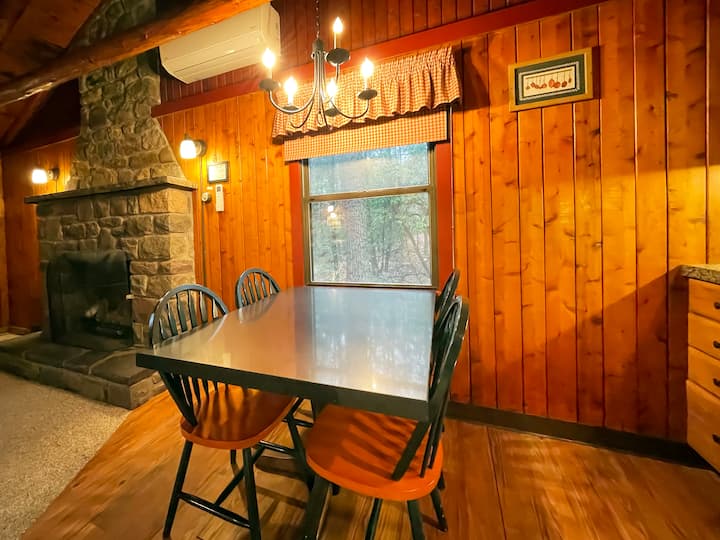 这间舒适的小木屋周围环绕着高耸的松树、郁郁葱葱的杜鹃花和桂冠,是完美的度假胜地。 非常安静,配有令人惊叹的石壁炉(无需木材)和带顶棚的木门廊,您的小木屋也靠近沙滩、游乐场和自然步道。