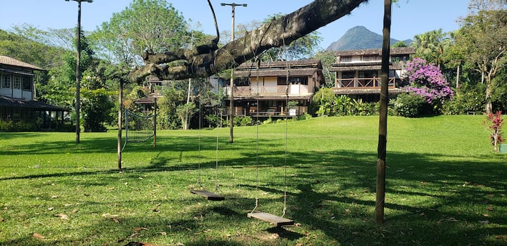 房源位于Maria da Graça公寓,位于Fundinho do Perequê,以其安全和天堂花园而闻名。 距离佩雷克海滩(Pereque Beach)仅5分钟车程,距离渡轮仅5分钟车程。