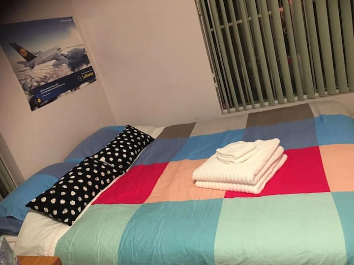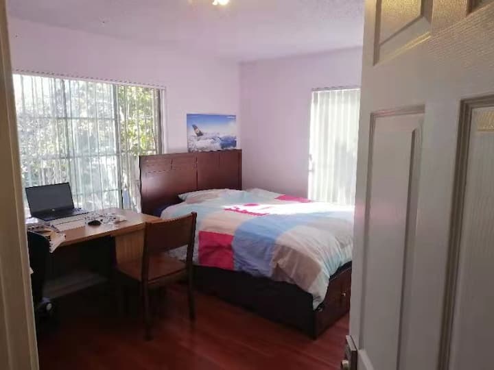 宽敞的卧室,可按月出租,配备标准双人