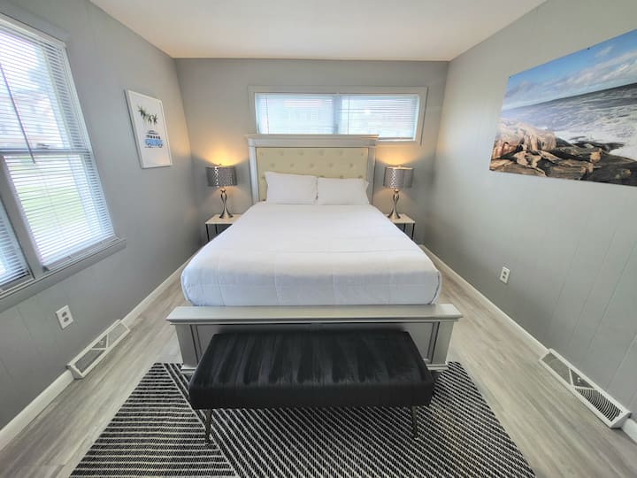 这栋宽敞的砖砌海滩别墅(建于1967年)为您提供真正的新英格兰体验,距离海洋海滩公园仅几步之遥! 房源采用分层设计。 我们家具齐全的5卧3卫房源,甚至可以让12位亲戚舒适奢华地住在一起! 可睡12人!最多可入住12人!