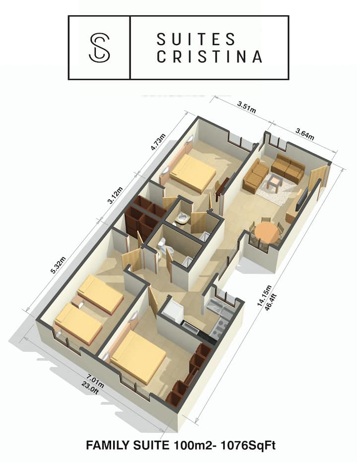 100平方米 免费每日自助早餐 3间卧室 2间浴室
