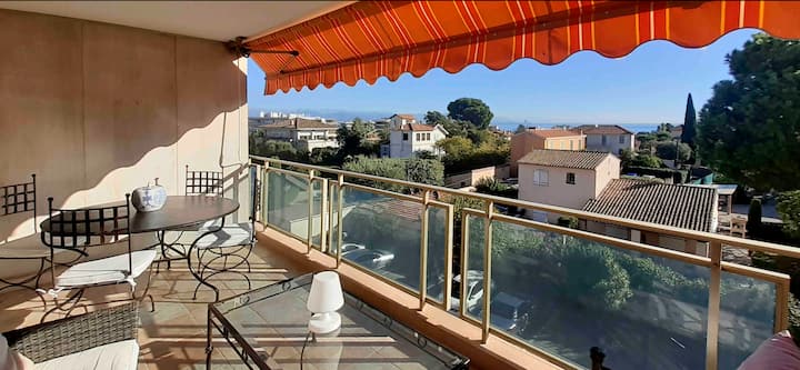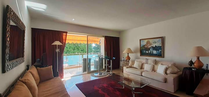 超棒的海景、露台、游泳池,靠近海滩。