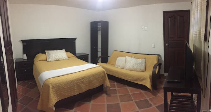 1 张约 1.35 米宽双人床、1张沙发床