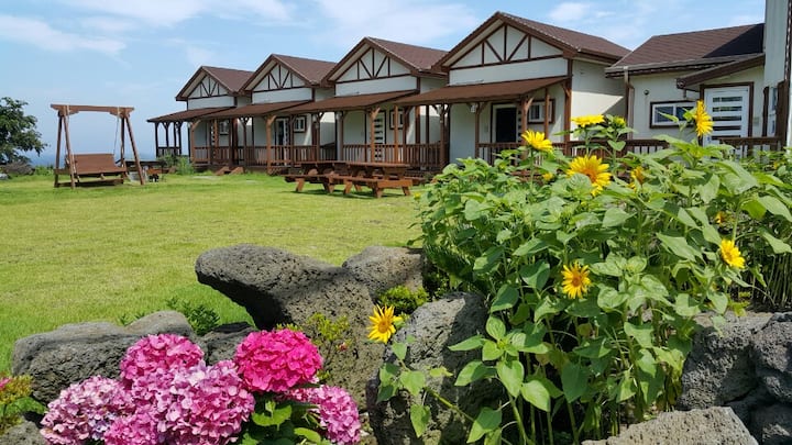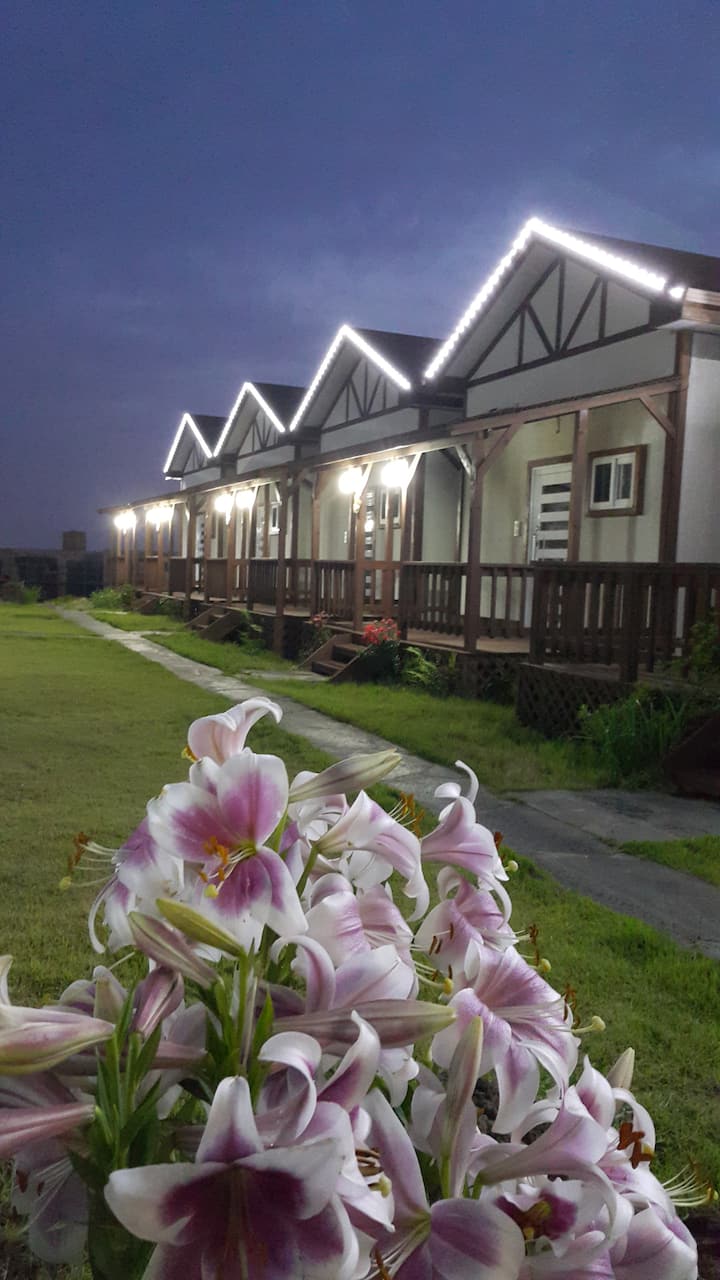 23平方米。2层独栋别墅(2个房间。2间浴室。1间客厅)。靠近Aewol海岸路。星巴克。4人(最多8人)