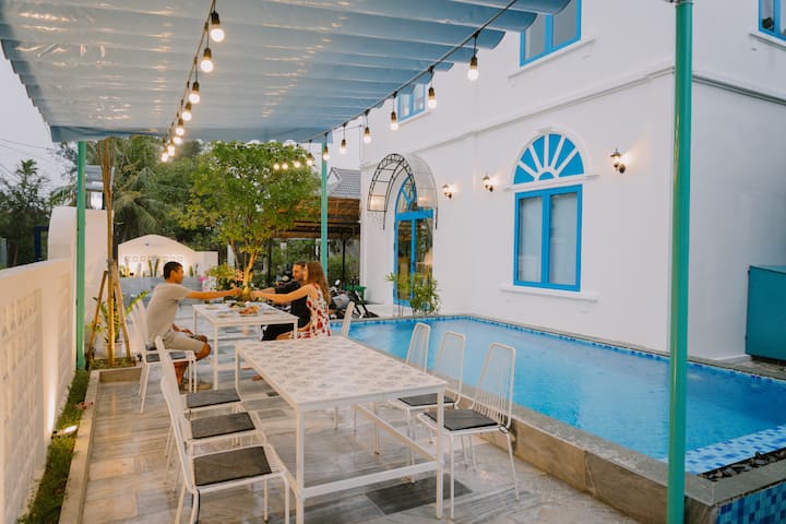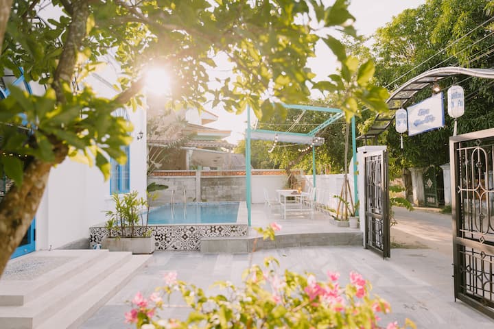 我的寄宿家庭位于一个祥和的传统村庄中,当地人很友好。 房源干净整洁,设施齐全,配有厨房、洗衣机、烘干机、私人泳池和宽敞的花园。
