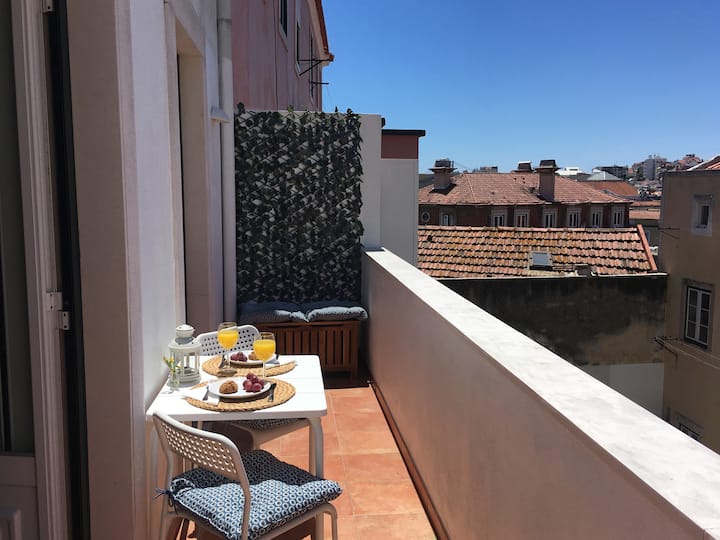 里斯本老城中心明亮舒适的阳台公寓