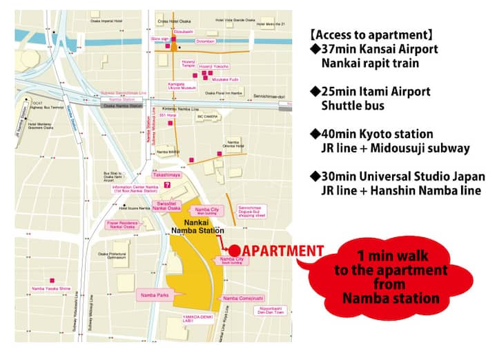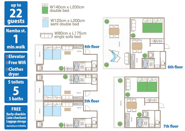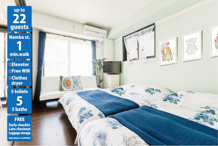 5个单元,距离难波1分钟,5个卫生间/免费提前入住延迟退房