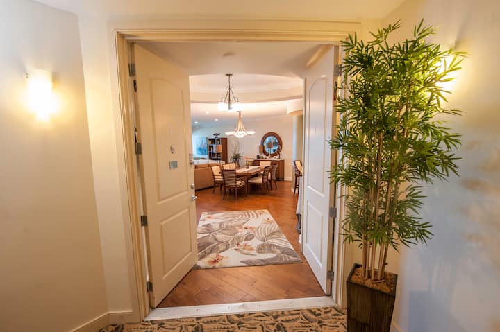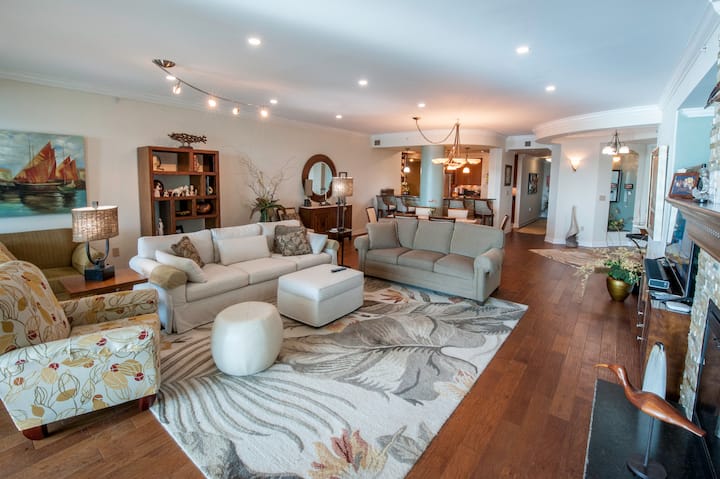 一旦您从私人电梯走进我们的房源,一直延伸到客厅,再到非常大的海滨私人阳台,就可以欣赏到壮丽的景色。 海滨主卧套房还设有通往500平方英尺海滨阳台的独立入口。 第二和第三间卧室套房通往自己的私人阳台,可欣赏海岸间水道上壮丽的日落。