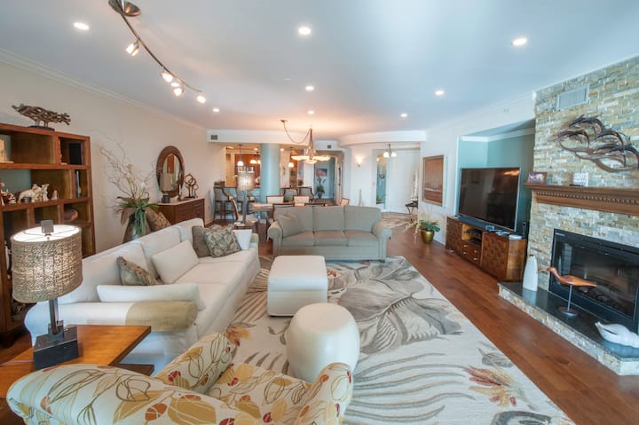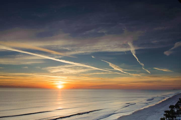 在代托纳海滩( Daytona Beach )最好的海滨公寓之一度假! 我们可直接欣赏大西洋和世界著名海滩的美景……宽敞的2,848平方英尺公寓,有3间卧室和3个半卫生间……装饰现代的开放式概念布局:非常适合与家人和朋友联系……众多便利设施,包括美食烹饪设备、5台高清电视、无线网络、舒适的Tommy Bahama岛家具、沙滩椅、趴板和沙滩玩具。