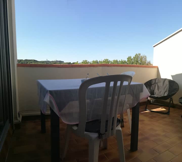 带露台和游泳池的夹层单间公寓