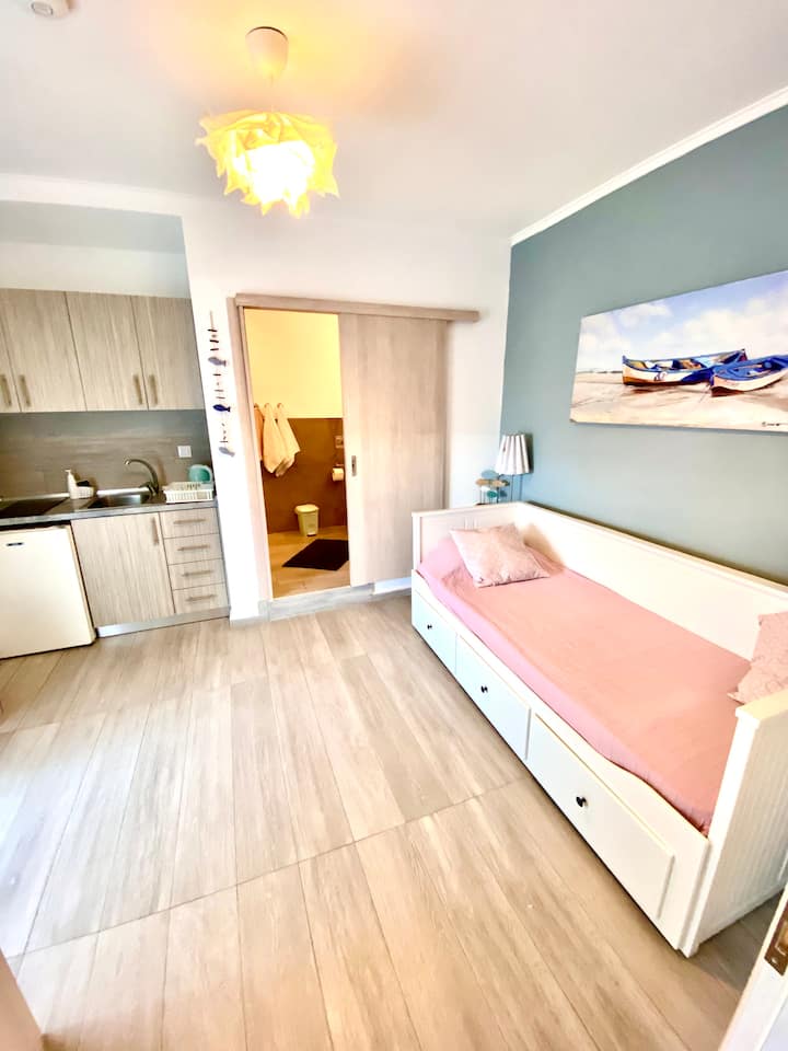 希腊Nea Vrasna的公寓式酒店内的房间