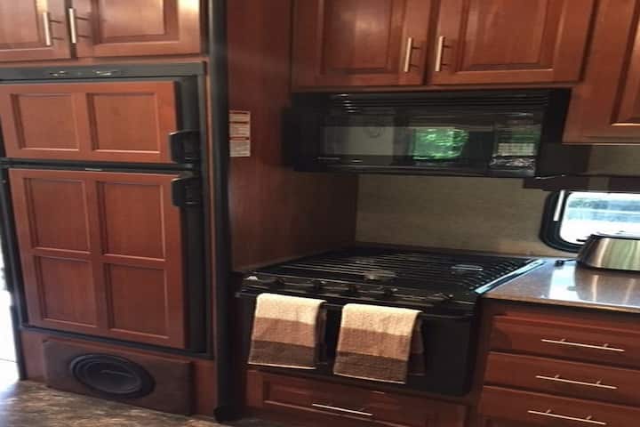 RV在国民生产总值西部附近的舒适五轮营营