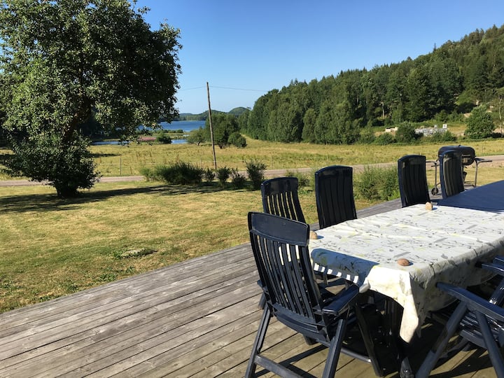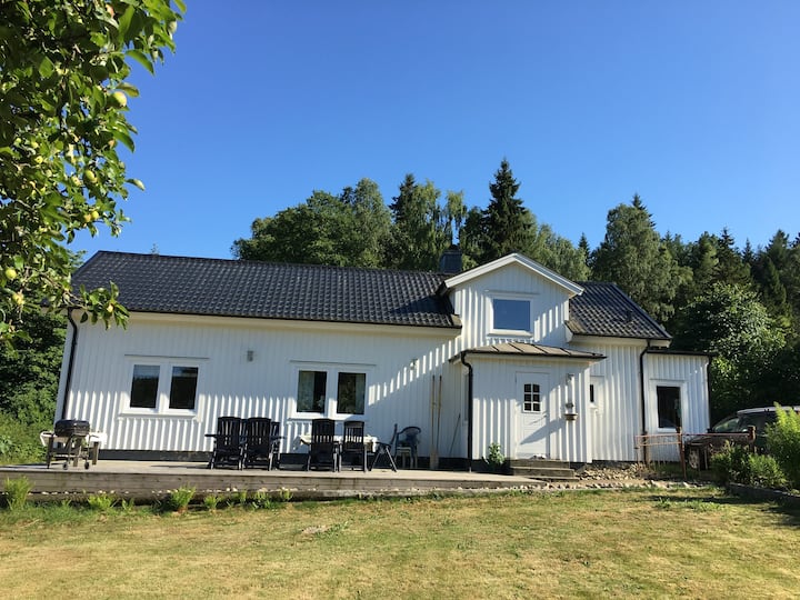 靠近森林、湖泊、瓦尔贝里的大房子,包含船和钓鱼